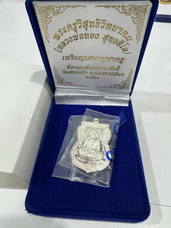 หลวงพ่อทอง วัดบ้านไร่ เหรียญเสมาบูชาครู2 ปี2560 เนื้อเงิน no.306 มีกล่องครบ