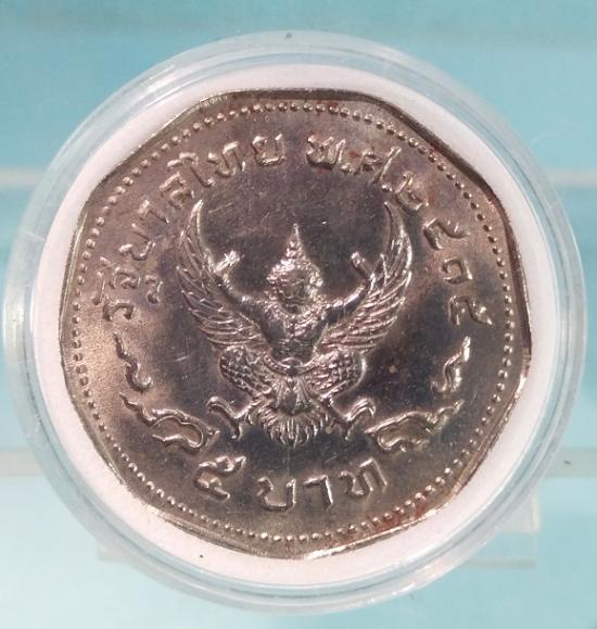 เหรียญ 5 บาท 9 เหลี่ยม รัชกาลที่ 9 หลังครุฑ พ.ศ. 2535 ผ่านใช้