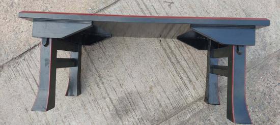 วัสดุและการตกแต่ง: ทำจากไม้และเคลือบด้วยแล็กเกอร์สีดำ โดยมีขอบและปลายขาเป็นสีแดง