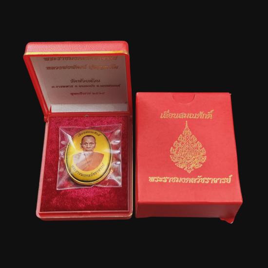 ล็อกเก็ตหลวงพ่อพัฒน์ ปุญญกาโม วัดห้วยด้วน รุ่นเลื่อนสมณศักดิ์ ฉากทอง หลังแบล๊คโรเดียม เลข 776 มาพร้อม กล่องเดิม **จองมา3500**