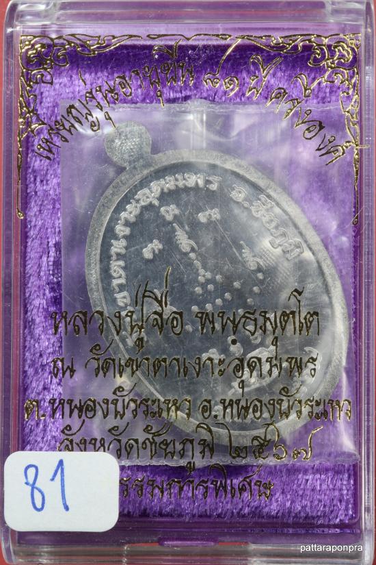ชื่อพระเครื่อง เหรียญหลวงปู่จื่อ รุ่นอายุยืน๘๑ ปี 2567 เนื้อตะกั่วหน้ากากเงินแท้ หมายเลข 81 เลขอายุ ๘๑