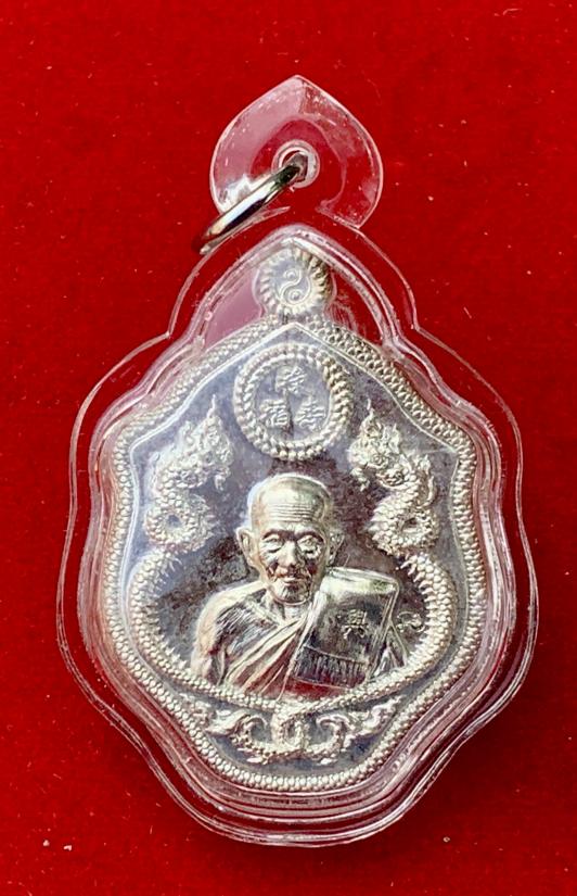 เหรียญพญานาคคู่ หลวงปู่แสน วัดบ้านหนองจิก เนื้อเงิน หมายเลข ๓