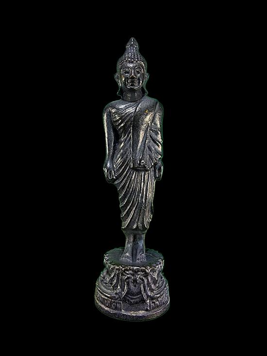 รูปหล่อ พระพุทธเจ้าเปิดโลก หลวงปู่หลิว วัดไร่แตงทอง เนื้อทองเหลืองรมดำ ปี 2539 |