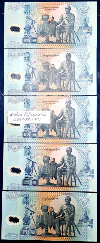ธนบัตร ร.9 ราคา 50 บาท โพลีเมอร์ ผ่านใช้น้อยมาก สวยวิ้ง จำนวน 5 ใบ ราคาเบาหวิว