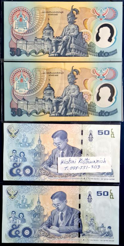 ธนบัตร ร.9 ราคา 50 บาท ผ่านใช้รวม 4 ใบ เป็นกาญจนาฯ โพลีเมอร์ 2ใบ และแบบ 16 เลขสวยๆ 2ใบ ผ่านใช้น้อยมาก สวยวิ้ง ราคาเบาหวิว