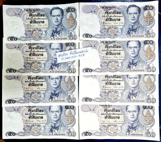 ธนบัตร ร.9 ราคา 50 บาท แบบ 13 ผ่านใช้น้อย 8 ใบ มีลายน้ำสมเด็จย่า 2 ใบราคาเบาหวิว