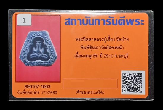 เคาะเดียว...ปิดตาหลวงปู่เฮี้ยง วัดป่า ชลบุรี พิมพ์ซุ้มเถาวัลย์หกเหลี่ยม 2 หน้า เนื้อผงคลุกรัก ปี10 สวยๆไม่ผ่านการใช้เลยครับ พร้อมบัตรรับรองจากทางเว็บ |