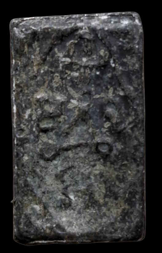 เนื้อชินตะกั่ว หลังยันต์ ไม่ทราบที่ ขนาดเท่าเหรียญบาท |
