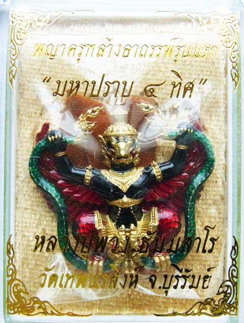 พญาครุฑ ล้างอาถรรพ์ รุ่นแรก " มหาปราบ ๔ ทิศ " หลวงปู่พวง วัดเทพนรสิงห์ ปี2565 เนื้อทองชนวนลงยา กายดำ ปีกแดง พญานาคเขียว (แยกจากชุดกรรมการ) ปลุกเสก 3 วาระ พระมหาสุรศักดิ์ , หลวงพ่อทอง , หลวงปู่พวง |