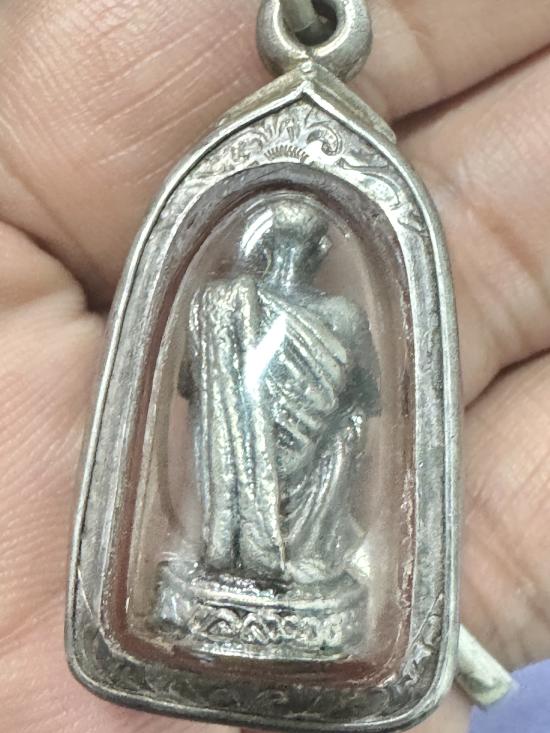 รูปหล่อเหมือน หลวงพ่อคูณ วัดบ้านไร่ นครราชสีมา ปี 2536 เนื้อเงิน พิมพ์นั่งยองเอกลักษณ์ เลี่ยมจับขอบเงินเก่า