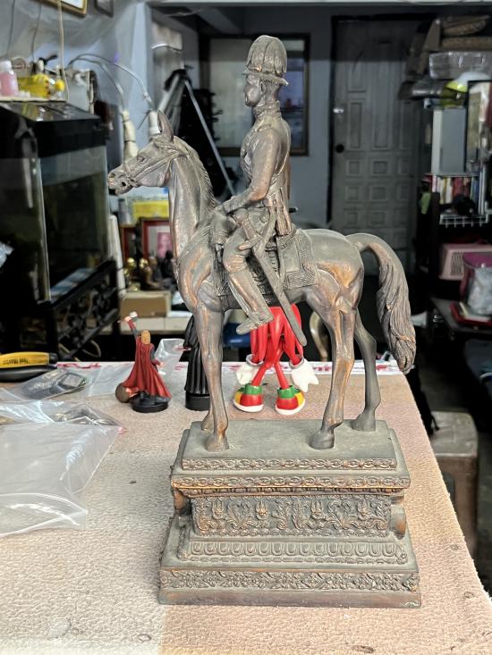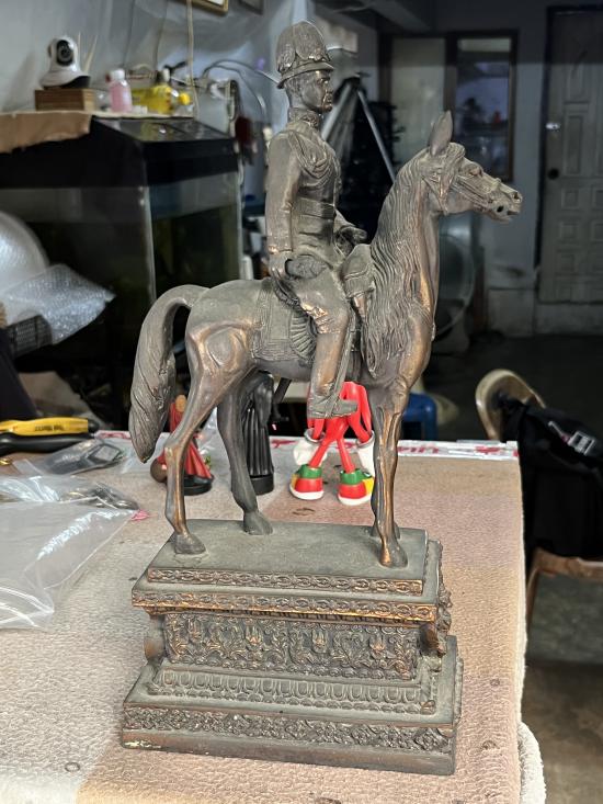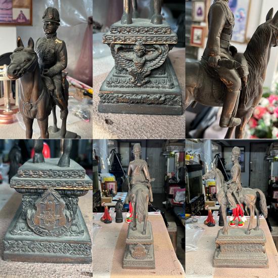 พระบรมรูปทรงม้า พระปิยะมหาราชรัชกาลที่5 สมาคม ทหารตำรวจพลเรือน จัดสร้าง เนื้อซิลิก้าอาบทองแดง คฑาถอดได้ องค์ใหญ่ สูงราว13นิ้ว สวยเดิม สมบูรณ์