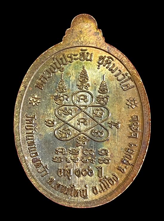เหรียญหน้าตรง หลวงปู่ประจัน ชุติมาวังโส วัดบ้านหนองหว้า ต.ขามใหญ่ อ.เมือง จ.อุบลราชธานี รุ่นแรก อายุ 106 ปี พ.ศ. 2562 |