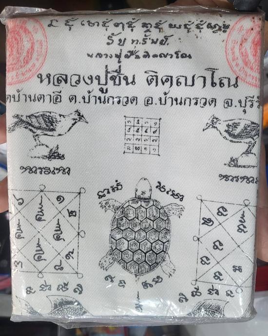 ผ้ายันต์+เหรียญเจริญพร หลวงปู่ชื่น วัดตาอี จ.บุรีรัมย์ ปี45 ผืนใหญ่ 55 x 75 ซ.หลวงปู่ชื่น วัดตาอี