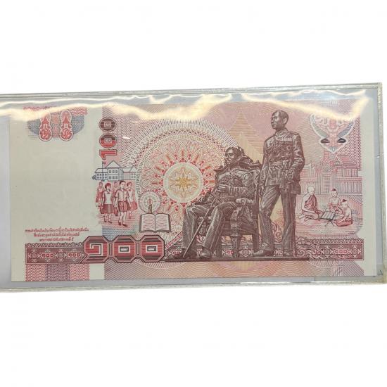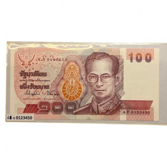 ธนบัตรไทยชนิดราคา 100 บาท แบบ 14 ในรัชสมัยรัชกาลที่ 9 เลข 4ข0123450 ไม่ผ่านใช้