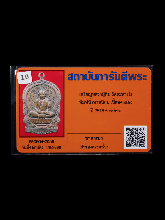 เหรียญหลวงปู่ทิม วัดละหารไร่ พิมพ์นั่งพานนิยมหลังจิก เนื้อทองแดง ปี2518 พร้อมบัตรรับรองครับ