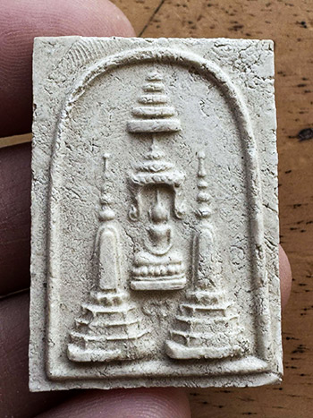 พระสมเด็จทรงฉัตรวัดชิโนรส เนื้อผงพุทธคุณหลวงพ่อกวย วัดโฆสิตาราม ปลุกเสก ปี 12 |