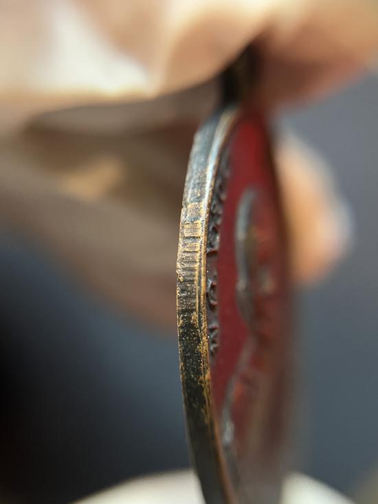 เหรียญหลวงพ่อแดง 2517 รุ่นหน้าหวาน คอ 5 เส้น เนื้อทองแดงรมดำ