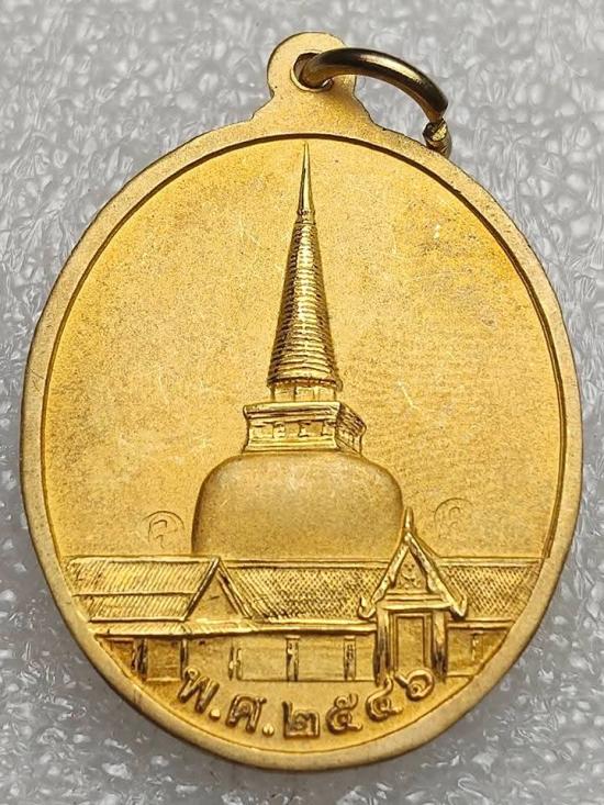 เคาะเดียวแดง ....เหรียญพระเจ้าศรีธรรมโศกราช วัดพระมหาธาตุวรมหาวิหาร จ.นครศรีธรรมราช พ.ศ.2546 เนื้อกะไหล่ทองพ่นทรายปัดเงาบางส่วน |