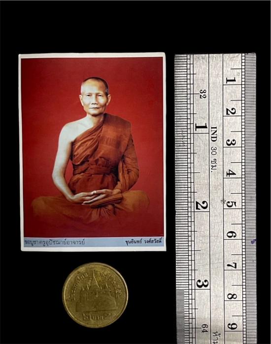 รูปภาพสี หลวงพ่อจรัญ ด้านหลังจานยันต์ มีหมายเลข ขนาดห้อยคอ |