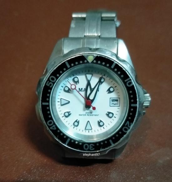 AAA นาฬิกาmatin มือ2ขายตามสภาพเครื่องญี่ปุ่น สวย80%สายและตัวเรือนสแตนเลสสตีลเนื้อดีเงาวับขนาดหน้าปัด26มิล รอบตัวเลขหน้าปัดหมุนได้ ใช้งานปกติทุกฟังก์ชั่น กันน้ำลึก200m. |