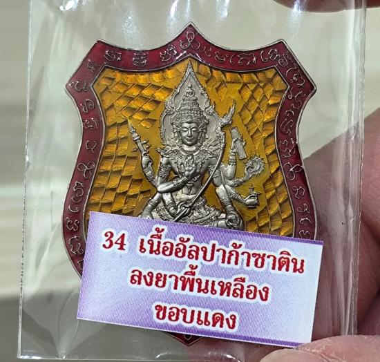 เหรียญท้าวมหาพรหม รุ่นเจ้าสัวพันล้าน(บอย ท่าพระจันทร์) เนื้ออัลปาก้าซาติน ลงยาพื้นเหลืองขอบแดง เลขโค๊ต ๑๖๖๕ พร้อมกล่องเดิม