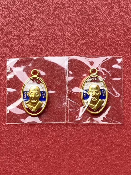 เคาะเดียวแดง เม็ดแตง 2องค์หลวงปู่ทวด รุ่น102ปีอาจารย์ทิม เนื้อชุบทองลงยาสีธงชาติ