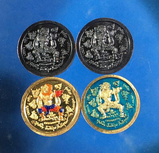 รายละเอียด -หรียญโชคดี หลังหนุมาน รุ่นเฮงพันล้าน (หลวงปู่ศิลา อธิฐานจิต ) พระอาจารย์ธรรมดล วัดหนองปรือ อำเภอปักธงชัย จังหวัดนครราชสีมา ปี๒๕๖๘ สวย 4 เหรียญ