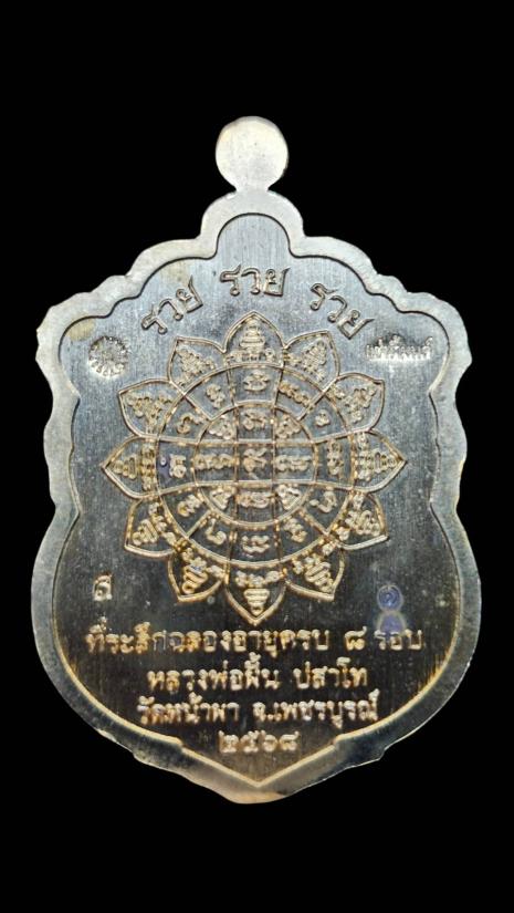 เหรียญเสมา8รอบรุ่นรวยรวยรวย หลวงปู่ฝั้น ปสาโท วัดหน้าผา (เลขโค้ด1 เลข1 เลขแม่ทัพ ) (เหรียญแช่น้ำมนต์)