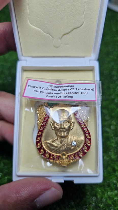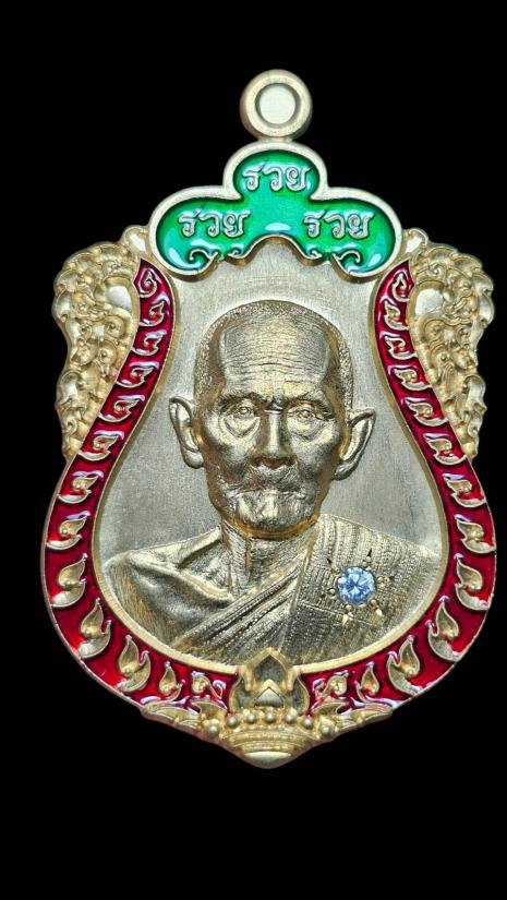 เนื้อสัตตะ ฝังเพชรcz1เม็ดสังฆาฏิลงยาขอบแดงบนเขียว. (เลข168)