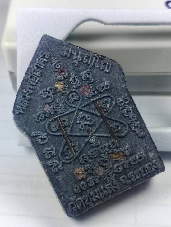 ขุนแผนพิมพ์ใหญ่ รุ่นแรก เนื้อไพรดำผสมผงพรายกุมาร ปี 53 หลังฝังตะกรุดทองแดงคู่ +พลอย+ เส้นเกษา หมายเลข 386 สร้าง 1,999องค์ หลวงพ่อสาคร ออกให้วัดชุมแสง พร้อมกล่องเดิม