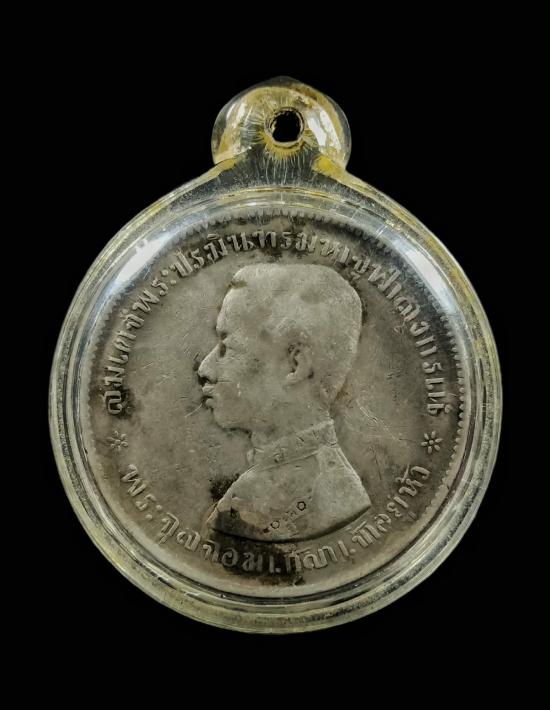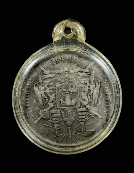 เหรียญ ร.5 หลังตราแผ่นดิน บาท 1 เนื้อเงิน พร้อมเลี่ยมเก่ามาดิมๆ ครับ