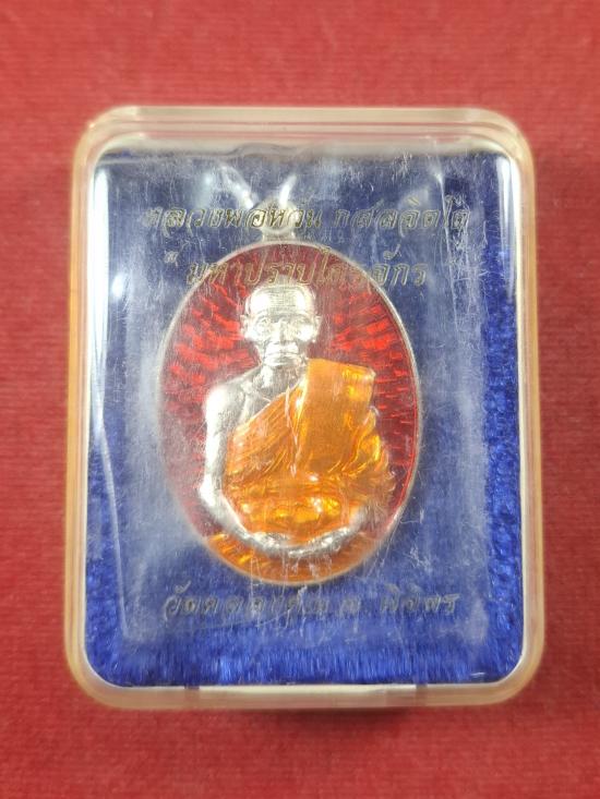 เหรียญมหาปราบไตรจักร หลวงพ่อหวั่น วัดคลองคูณ เนื้อเงินลงยาแดง ปี 60 หมายเลย 169 พร้อมกล่องเดิมครับ