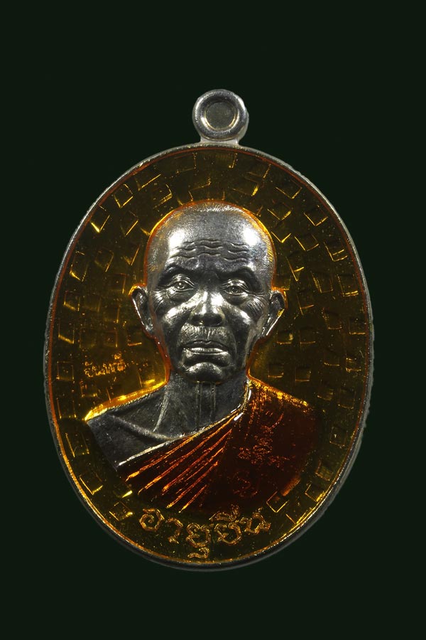 เหรียญอายุยืน เนื้ออัลปาก้าลงยาสีเหลือง หลวงพ่อคูณ วัดบ้านไร่ |
