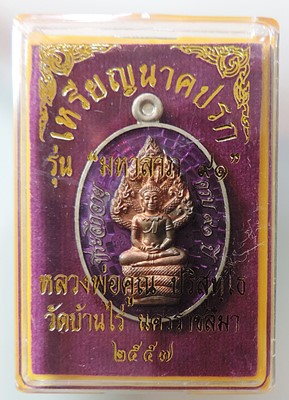 เหรียญนาคปรก รุ่น มหาลาภ 91 ออกวัดบ้านไร่ ปี 2557 **เนื้ออัลปาก้า ลงยาม่วง + หน้ากากนวะ ** เลขเด็ดๆ No. *๗๖๘ *กล่องเดิม |