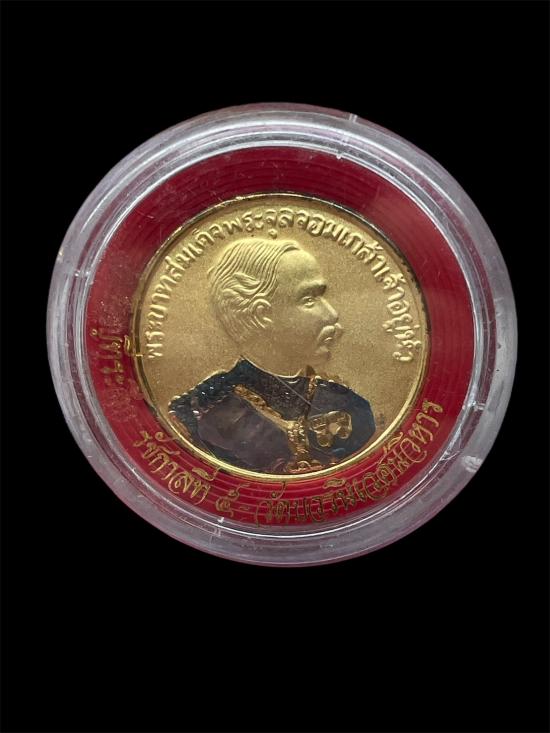 เหรียญพระบาทสมเด็จพระจุลจอมเกล้าเจ้าอยู่หัว หลังพลเรือเอกกรม หลวงชุมพรเขตอุดมศักดิ์ เนื้อโลหะกะไหล่ทอง ลงยา พระสวยผิวเดิม ๆครับ |