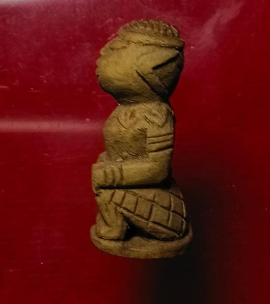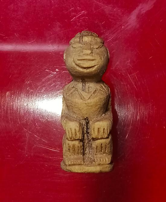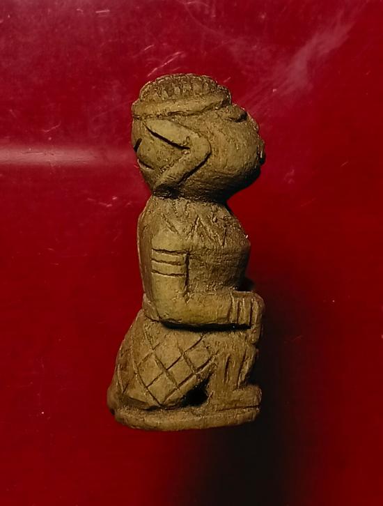 สำหรับหนุมานองค์นี้แกะจากไม้รากพุฒซ้อนเช่นเดียวกับต้นตำรับ มีรอยจารใต้ฐาน และเคยแช่น้ำมันจันทร์มาก่อนครับ สีเลยเข้มกว่าปกติครับ สร้างเมื่อปี 2535 เนื้อไม้ประมาณ 300 ตัว ก่อนที่จะมีรุ่นต่อๆ มาครับ