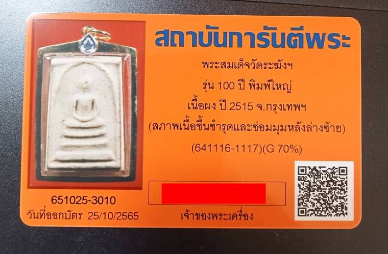 พระสมเด็จ 100 ปี วัดระฆัง พิมพ์ใหญ่ ไข่ปลาเลือน นิยม เลี่ยมทอง 3.4 กรัม พร้อมบัตรจี สภาพตามบัตร ครับ