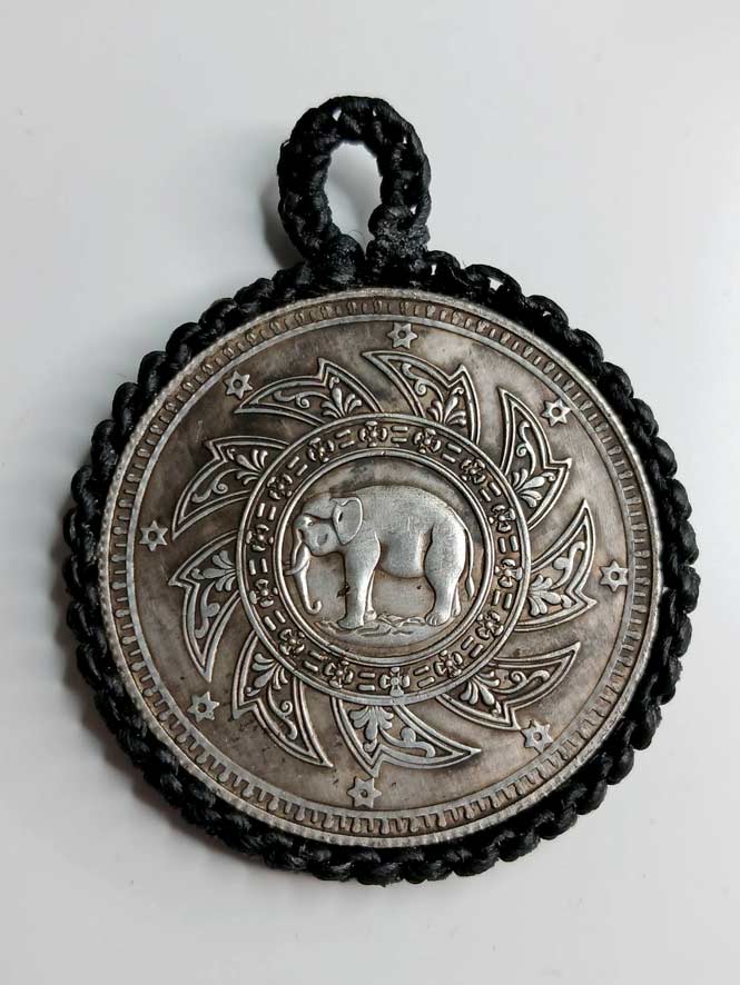 ชื่อพระเครื่อง เคาะเดียว เหรียญ พุ่มฉัตร หลัง ช้างในพระแสงจักร ขอบสตางค์