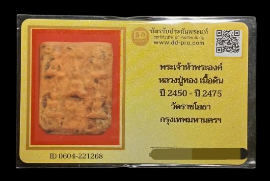 เคาะเดียวเบาๆ...พระหลวงปู่ทอง พิมพ์พระเจ้าห้าพระองค์ หลังยันต์ เนื้อดิน วัดราชโยธา ปี2450-2475 จ.กรุงเทพ สวยเดิมครับ พร้อมบัตรรับรอง |