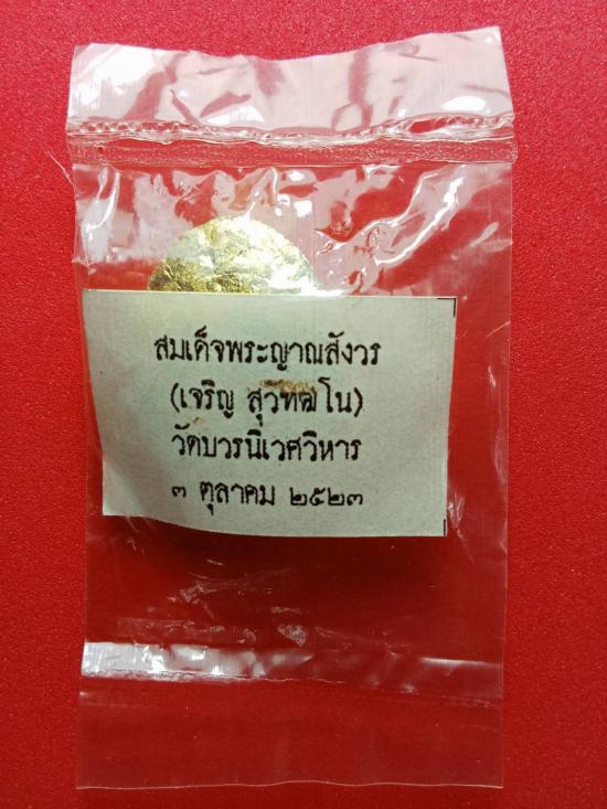 เคาะเดียว พระในซองพลาสติกซีลเดิมพระปิดตายันต์ดวงเล็ก เนื้อผงธูปกัมมัฏฐานผสมผงพุทธคุณปิดทองคำเปลวแท้ทั้งองค์ สมเด็จพระญาณสังวร(เจริญ สุวัฑฒโน ปธ.๙) วัดบวรนิเวศวิหาร ๒-๓ ตุลาคม ๒๕๒๓