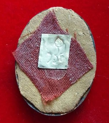 ล็อกเก็ตรุ่นแรก หลวงปู่ครูบาออ ปัณฑิต๊ะ สำนักสงฆ์พระธาตุดอยจอมแวะ อ.เชียงดาว จ.เชียงใหม่ ปี 2554 หลังมวลสาร ติดจีวร แผ่นเงิน ตอกโค๊ต หมายเลข 164