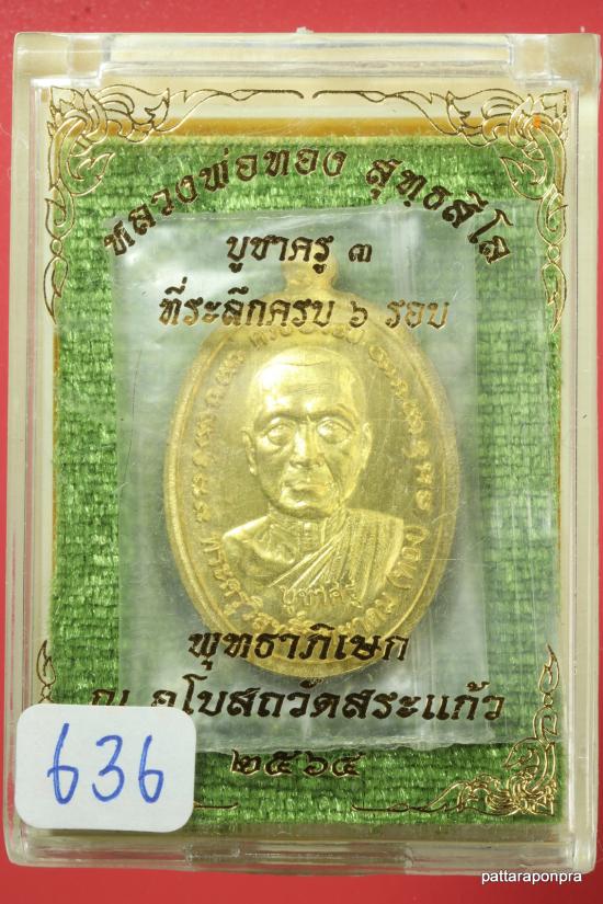 เหรียญหลวงพ่อทอง รุ่นบูชาครู ปี 2564 เนื้อทองฝาบาตร หมายเลข 636 |