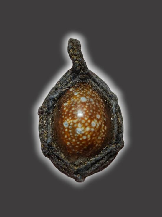 A6188.เบี้ยเเก้ หลังตะกรุด เขย่ามีเสียง ไม่ทราบที่ เคาะเดียวเเดง