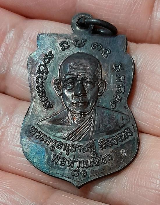 พ่อท่านเขียว วัดห้วยเงาะ รุ่นบารมี 81 ปี 52 พิมพ์เสมาหน้าเลื่อน หลังพ่อท่านเขียว เนื้อทองแดงรมดำ ผิวรุ้งๆสวยกริ๊บค่ะ