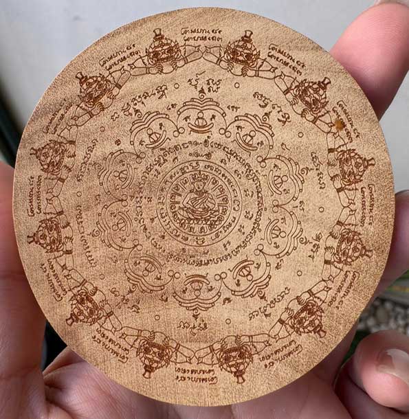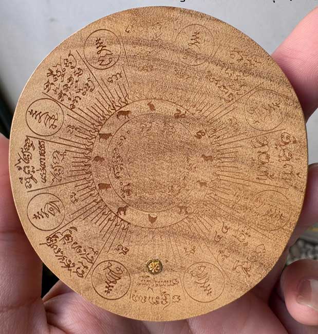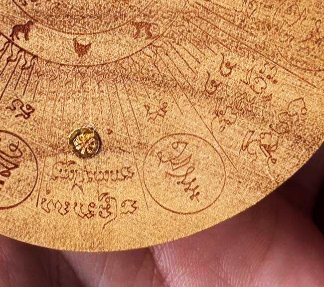 สำหรับองค์ที่นำมาตั้งประมูลเป็นแว่นกลมไม้ค้ำฟ้า ขนาด 7 ซม.พิมพ์พระเล็ก นำมายิงด้วยเลเซอร์ขึ้นลวดลายทั้งองค์พระครับ งดงามอลังการงานสร้างครับสร้างแค่500 ลูกครับ ตอกดอกจันทองคำ1ดอก เป็นอีกวัตถุมงคลของพิธีนี้ที่ต้องใช้คำว่าหายากเอาเรื่องครับพี่ ไม่ค่อยมีของหมุนเวียนครับ งานฝีมือคับแฮนเม้ดจะไม่เท่ากันทุกลูกคับ ยิงเลเซอร์หมายเลขทุกองค์ องค์นี้เลขคู่มงคล ๔๔ ครับ สภาพสวยสมบูรณ์ไม่มีบิ่น ร้าว รับประกันความแท้ตลอดไปครับ ต่อไปหาไม่มีเก็บได้เก็บไว้ให้รุ่นลูกหลานดูครับ ไม่มีกล่องเดิมนะครับ
