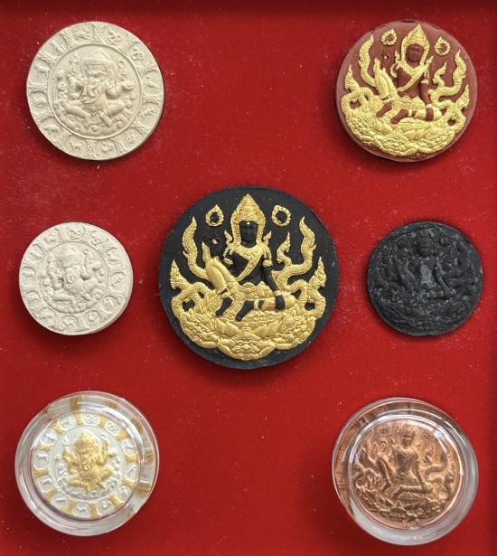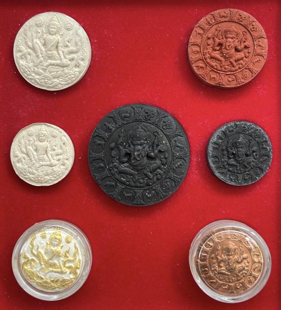 พระเทวราชโพธิสัตว์จตุคามรามเทพ - พระพิฆเณศวรเทพเจ้าแห่งความสำเร็จ เนื้อว่านแดงปัดทอง รุ่น อภิมหาสมบัติวัดโคกเนียน จังหวัดพัทลุง วิทยาลัยช่างศิลป์นครศรีธรรมราช สร้างปี 2550
