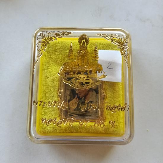 ล็อกเก็ต(พระบรมฉายาลักษณ์ทองคำ) ในหลวง รัชการที่ 9 ((พิมพ์เลเซอร์บนแผ่นทองคำ 97.66%) หุ้มกรอบชุบทองไมครอน |
