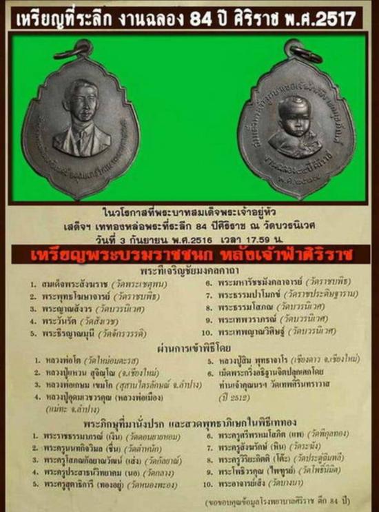 ชื่อพระเครื่อง เหรียญพระบรมราชชนก หลังเจ้าฟ้าศิริราช พ.ศ.2517
