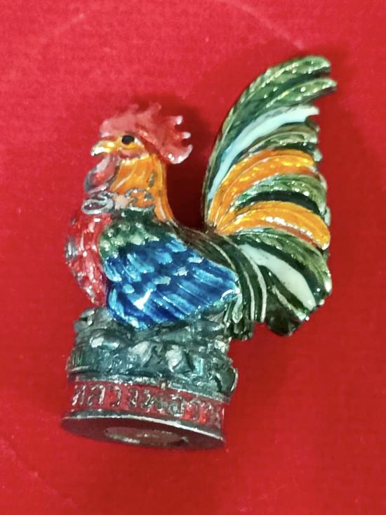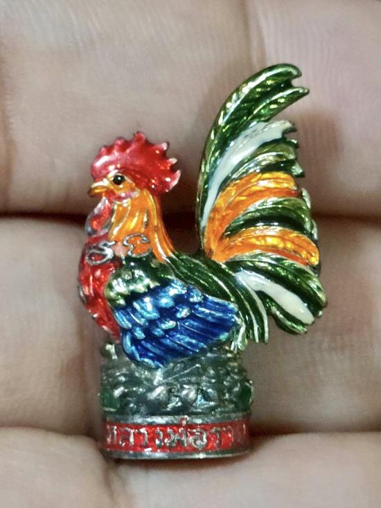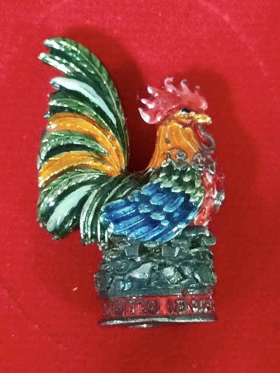 ไก่ หลวงพ่อรวย วัดตะโก จ.อยุธยา รุ่น รวย รวย เฮง เฮง เนื้อเงินลงยา ตอกโค๊ต ตอกหมายเลข 849