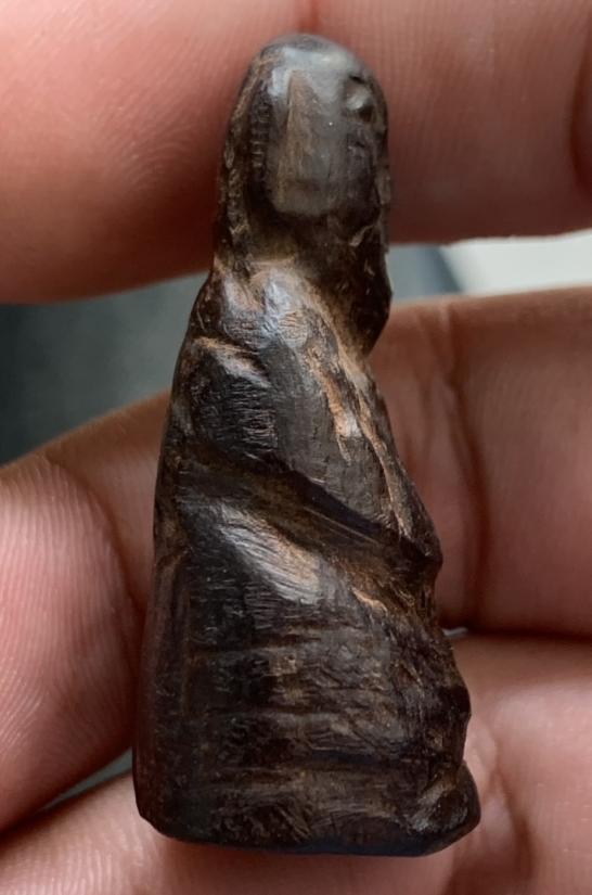 ไม้แกะเก่า ก้นฝั่งตะกรุด ไม่ทราบที่ครับ |